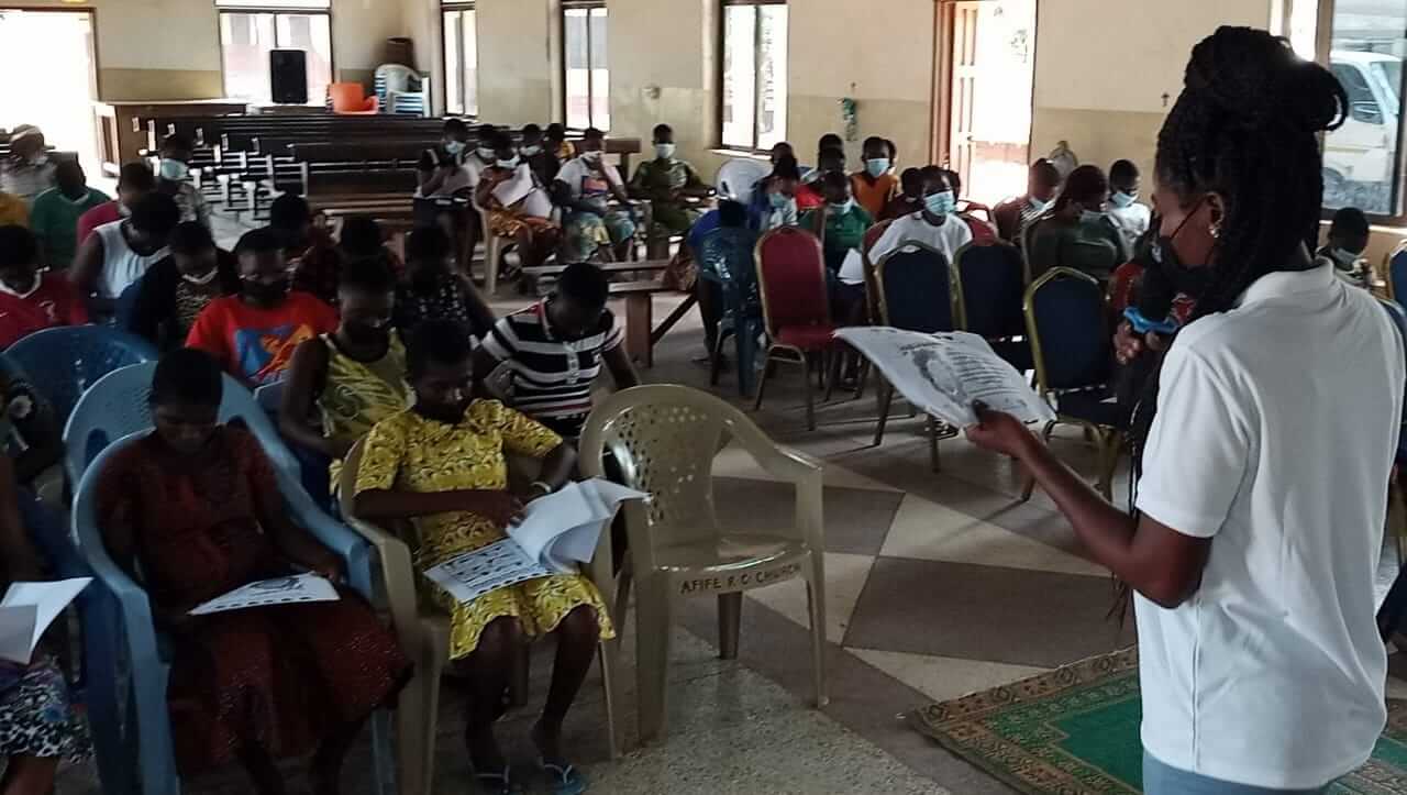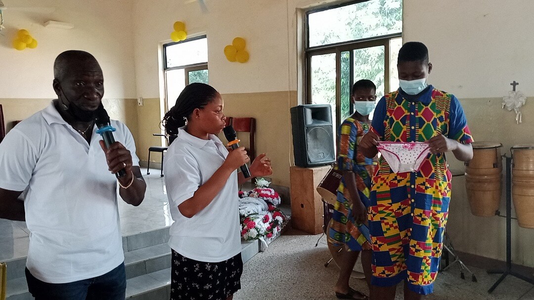 Good afternoon to you all. Our trip to Logba was successful by the Grace of God. When we got to Logba, we met the teen girls and health Education on periods menstrual health interventions and hygiene awareness was given to the teen girls. The education was interactive and they asked questions which I answered them tactfully. I asked them what their challenges were and some of them said: